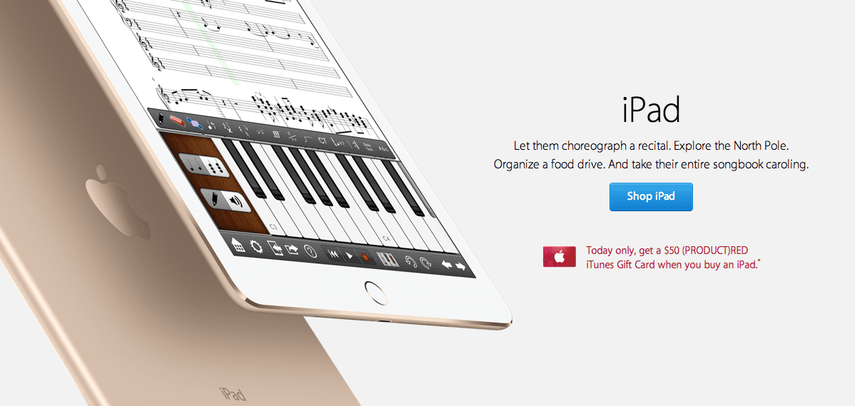 Negli Stati Uniti oggi è possibile acquistare un iPhone o un iPad ed ottenere una iTunes Gift Card da 50$ in omaggio, oppure un Mac e ricevere una card da 100$ in omaggio. Partecipano all’iniziativa anche le cuffie Beats, che permettono di ottenere una card da 25$, così come gli iPod.