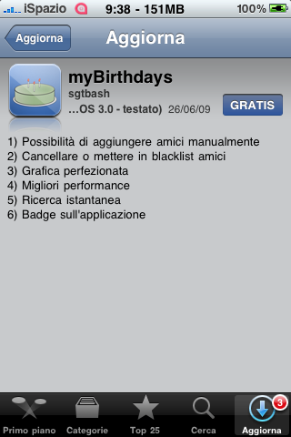 MyBirthdays è un’applicazione disponibile in AppStore che ci permette di ricordare tutti i compleanni dei nostri più cari amici. E’ appena stato rilasciato un nuovo aggiornamento che porta tantissime novità. L’utilizzo resta estremamente semplice e non è più basato esclusivamente sul database “MyCalendar” di Facebook in quanto è stata integrata la possibilità di aggiungere nuovi compleanni manualmente, attravarso il tasto “+” posto in alto a destra nella schermata principale.