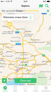 Oltre a visualizzare le attività nei dintorni, potremo avvalerci di un potente strumento di ricerca accessibile mediante l’apposita icona. Potremo cercare esercizi commerciali in diverse categorie come: Food & Drink; Nightlife, Negozi, Servizi, Tempo Libero e Viaggi.