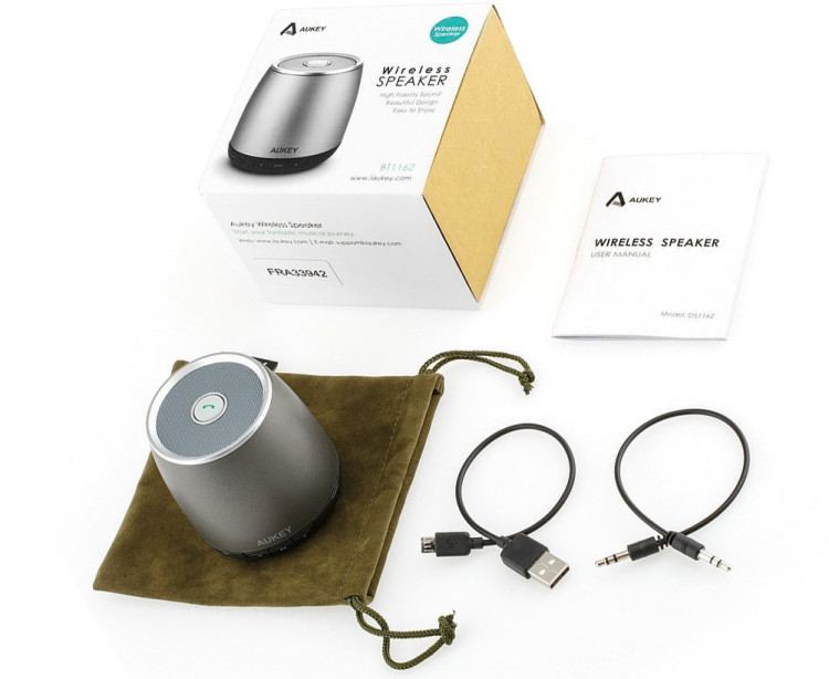Stiamo parlando dello speaker Aukey BT1162, piccolo e compatto che sta nel palmo di una mano. Nella confezione troviamo anche una sacca per facilitarne il trasporto. E’ davvero molto comodo da portare con noi in vari punti della casa ma anche quando siamo fuori: al mare, in un picnic, a casa di amici e così via.