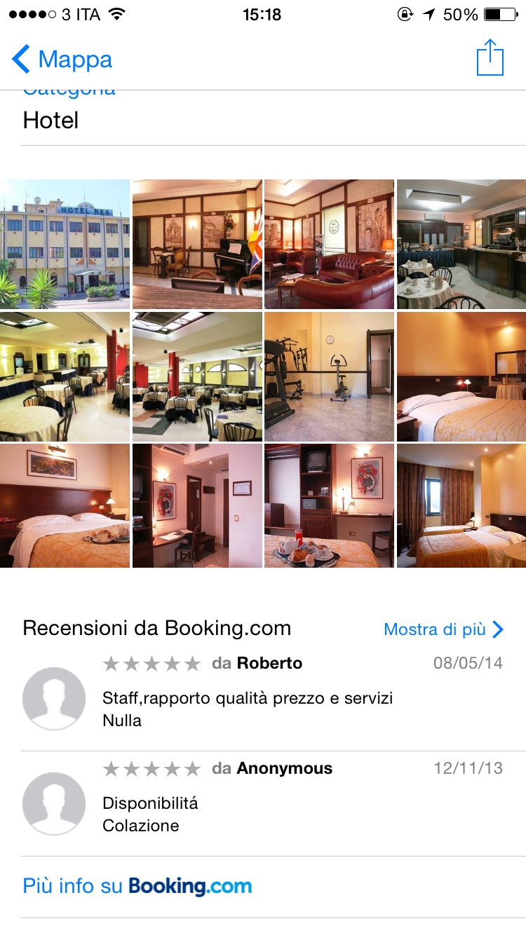 Grazie a questa nuova partnership, potremo ricercare Hotel direttamente da Mappe, ottenendo immagini e recensioni attinte direttamente dai siti più famosi in questo settore.