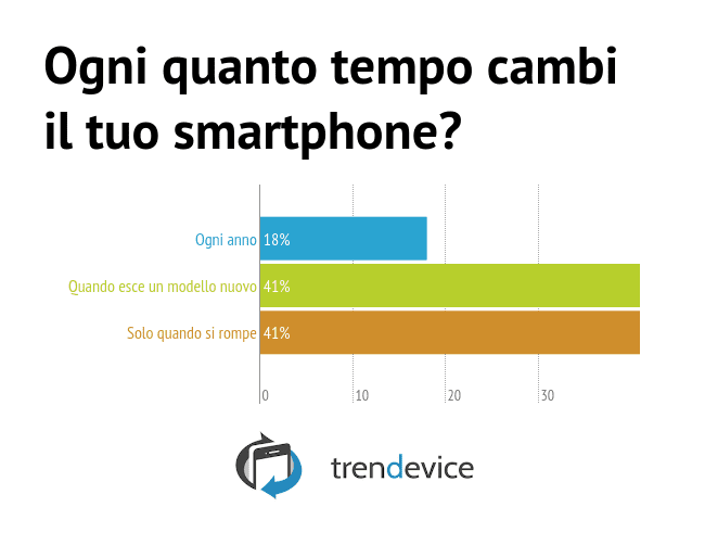 In linea con questo orientamento, il 18% degli intervistati conferma di cambiare ogni anno lo smartphone, il 41% quando esce sul mercato un nuovo modello ed il 41% solo quando si rompe il proprio telefonino.