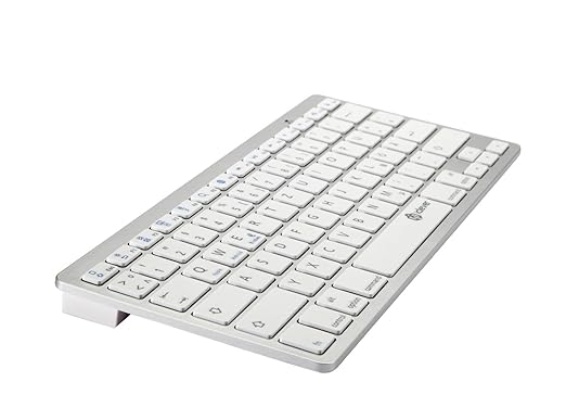 E’ piccola, è sottile (4mm) e leggerissima. Funziona con il Bluetooth 3.0 ed è alimentata da due batterie AAA. E’ una tastiera di tipo QWERTZ e non QWERTY. L’unica differenza di questa tastiera è che viene invertita la posizione della lettera Z e quella della Y. Tutte le altre lettere sono posizionate esattamente nel modo in cui siamo abituati ad utilizzare la nostra tastiera di casa.