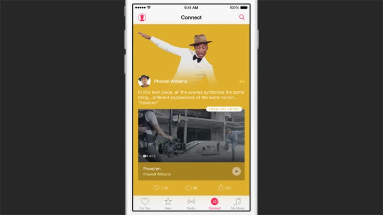 - Il quarto Tab è Connect, che permetterà agli artisti affermati ma anche alle persone non ancora famose di caricare video, brani, foto ed altro, per ottenere la fama e diventare qualcuno