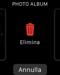Photo Album invece, ci permette di impostare le nostre immagini come sfondo. Io ho scelto di sincronizzare automaticamente con Apple Watch tutte le foto che contrassegno come “preferite” su iPhone attraverso l’icona del cuoricino. Con Photo Album quindi, riesco ad impostare il mio cagnolino come quadrante. Per eliminare un quadrante, basta trascinarlo verso l’alto.