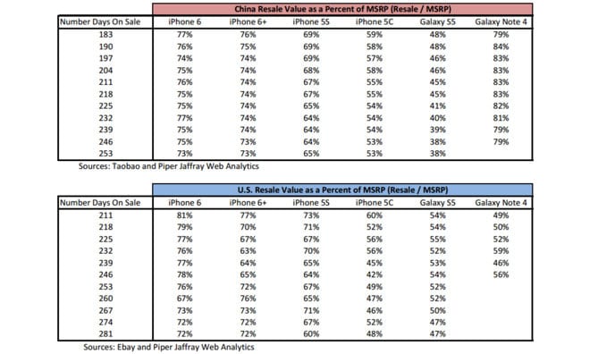 Diciamo la verità, quando si acquistano smartphone che non siano iPhone, accade spesso che gli acquirenti facciano un vero e proprio investimento nel comprare il dispositivo al rilascio sul mercato e che si ritrovino anche un solo mese dopo con un oggetto con un valore di mercato molto inferiore. Da quanto emerso da una ricerca di Piper Jaffray questo fenomeno non coinvolge iPhone 6 e iPhone 6 Plus.