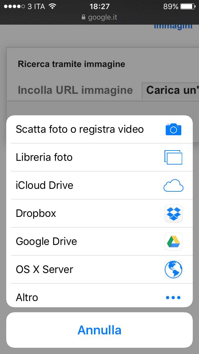Mentre con iOS 8 possiamo scegliere soltanto la Libreria di foto del dispositivo, con iOS 9 potremo aggiungere un file da iCloud Drive, da Dropbox, Google Drive e così via. Il menu è dinamico e potrà essere arricchito installando altre applicazioni di storage all’interno delle quali sono contenute i nostri file.