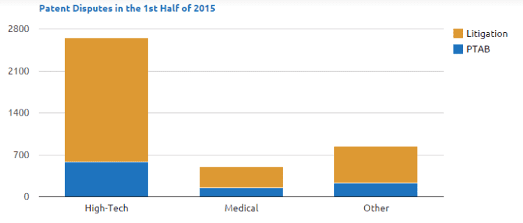 Il 2015, in generale, vedrà il raggiungimento del picco storico di 7500 azioni legali per infrazione di brevetti. La maggior parte di queste vede come organi accusatori quelle che vengono chiamate in gergo “non-practicing entities”, ovvero enti che si limitano a possedere la proprietà intellettuale di alcuni brevetti senza farne un uso effettivo.