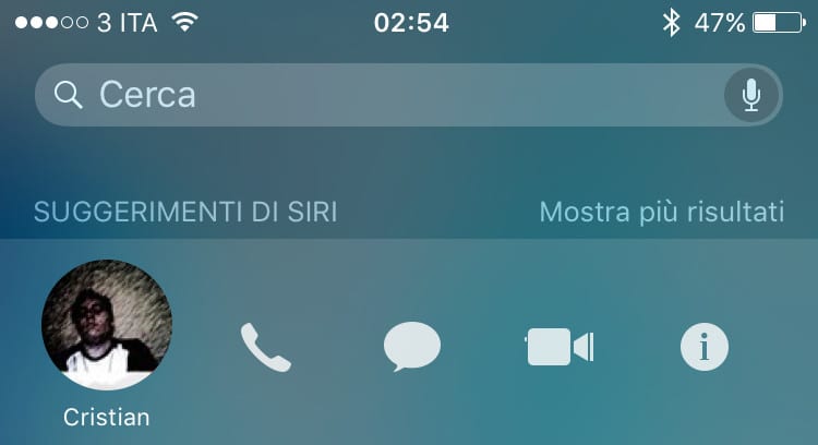 76. L’interfaccia dei suggerimenti Siri in Proactive è cambiata per quanto riguarda i contatti. Cliccando su uno di essi infatti, vengono visualizzate soltanto le icone per chiamare, inviare un messaggio o FaceTime, senza etichette descrittive (presenti invece nella beta precedente).