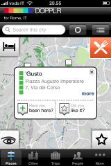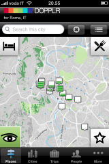 Dopplr è un utility disponibile in AppStore con cui possiamo controllare i locali di ristorazione, pernottamento e di intrattenimento più vicini a noi, selezionati e scelti da altri utenti, oppure esaminati manualmente tramite il GPS ed una lista delle 250 località più visitate.