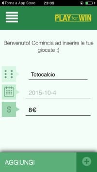 - Home: da cui possiamo facilmente aggiungere una nuova giocata