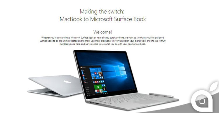Se negli anni ’90 fu Apple a illustrare ai suoi fan come effettuare la migrazione a Mac, oggi è l’azienda di Redmond che cerca rivalsa dedicando una sezione del suo sito web in cui fornisce indicazioni per la migrazione da Surface Book a Macbook.