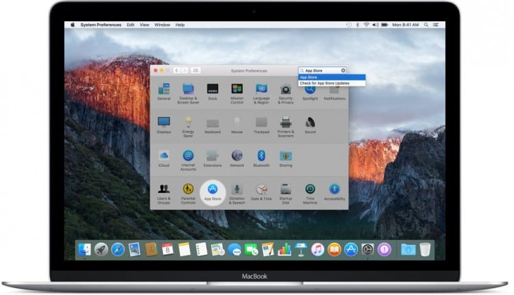 - Andate nel menu Apple () presente nella barra dei menu e selezionate Preferenze di Sistema. Poi selezionate l’icona App Store.