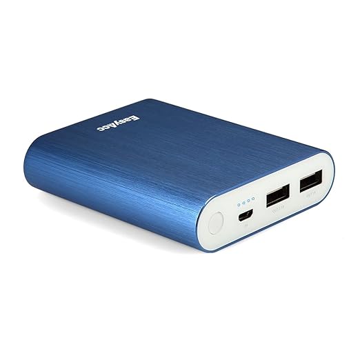 Batteria esterna da 10.400 mAh in finitura metallica di alluminio, colorato di blu. Stile e funzionalità uniti in un prodotto portatile ma efficiente.