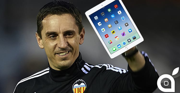 L’allenatore in questione è Gary Neville, ex grande bandiera del Manchester United e attualmente alla guida del Valencia. La squadra milita nella LIGA Spagnola (la nostra Serie A), e considerate le sue carenze nello spagnolo ha deciso di utilizzare gli iPad per far capire correttamente ai suoi giocatori movimenti e tattiche.