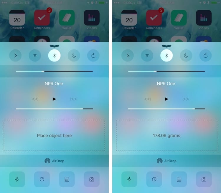 Una volta scaricata l’applicazione dalla repository di BigBoss su Cydia, il tweak aggiungerà automaticamente una sezione nel centro di controllo di iOS, sulla quale dovremo appoggiare i nostri oggetti per effettuare una misurazione. Per farlo si consiglia comunque l’utilizzo di strumenti in metallo, per esempio un semplice cucchiaio, sui quali appoggiare i nostri oggetti, in modo da ottenere una misurazione migliore. Il tweak tutto sommato è abbastanza preciso e riesce a fornirci il peso in grammi dell’oggetto misurato, fino ad un massimo di 385 grammi.