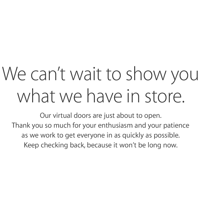 Come di consueto, l’Apple Online Store è andato down in vista dell’evento di oggi. Sul sito web si legge ‘Le cose più belle si fanno sempre un po’ aspettare’.