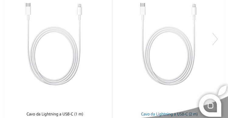 Il cavo da Lightning a USB-C è disponibile nelle due misure da 1 metro al costo di 29€ e da 2 metri al costo di 39€.