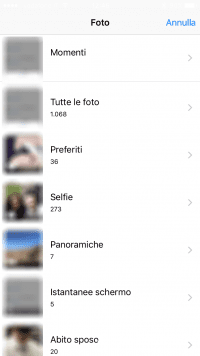 5.Cliccare sulla voce Aggiungi foto – Scegli foto, dopo aver confermato l’accesso alle foto da parte di Siri, avremo modo di consultare tutti gli album del dispositivo.