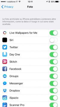 - Impostazioni – Privacy – Foto – Siri (disabilitiamo)