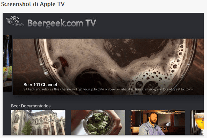 Al momento le anteprime non sono disponibili per tutte le applicazioni per la Apple TV. Se siete curiosi di scoprire tale novità, ecco il link dell’app Beergeek.com TV.