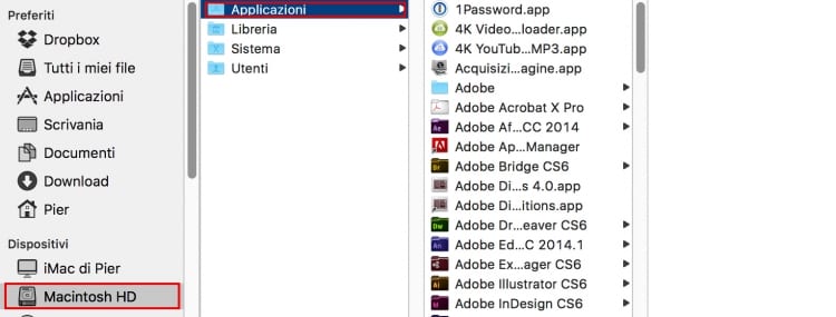 1. Dalla finestra del Finder andate selezionate il vostro Hard Disk e quindi aprite la cartella Applicazioni e cercate l’applicazione o gioco su cui volete intervenire per abbassare la risoluzione.