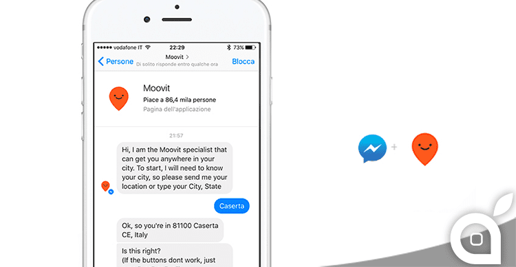 Dopo la conferenza F8 durante la quale Facebook ha presentato l’integrazione dei “chatbot” su Messenger, Moovit ha annunciato il lancio del primo bot per il trasporto pubblico integrato con la piattaforma di messaggistica del social network. La prima versione del bot per Facebook Messenger aiuterà gli utenti a pianificare il loro viaggio, rispondendo a tutte le loro richieste e alle loro domande, fornendo informazioni sul percorso migliore da seguire.