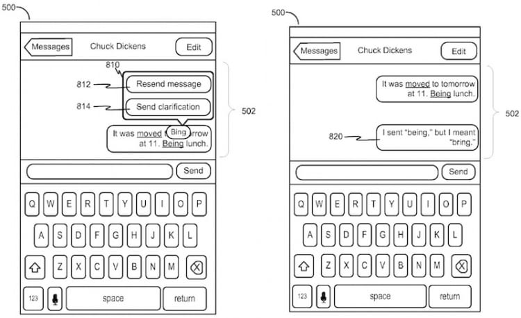 Apple descrive una nuova interfaccia che mette in risalto parole o frasi modificate dal correttore automatico. Il sistema non è abbastanza avanzato per chiarire quali siano la reale intenzione del mittente in fase di digitazione ma consente al destinatario di visualizzare quali parti siano state corrette automaticamente.