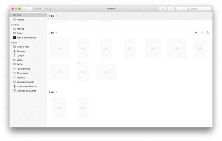 8. Cambia l’impostazione di default grafico di Foto. Adesso la visualizzazione predefinita è quella con la classica barra laterale in stile Finder, in precedenza la modalità di default mostrava i pulsanti delle categorie in alto.