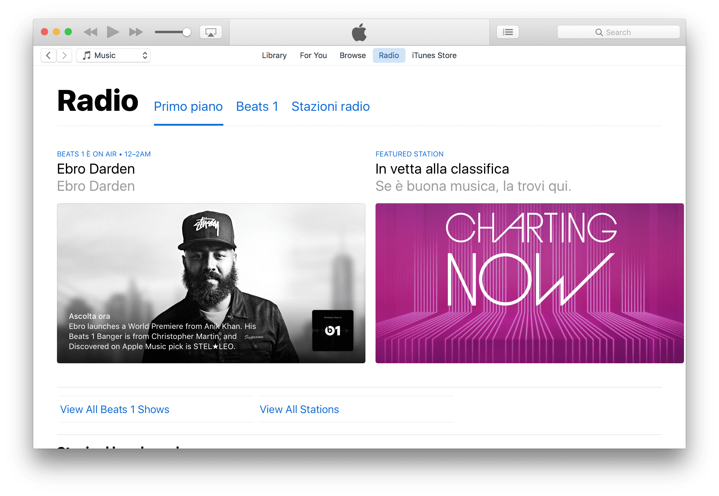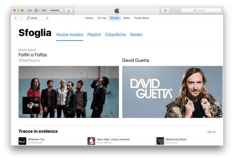 10. Nuovo design di Apple Music nella versione di iTunes preinstallata su macOS 10.12 Sierra.