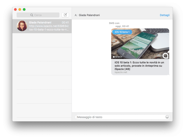 16. L’applicazione Messaggi su macOS supporta poche delle novità introdotte in iOS 10. Attualmente le novità che troviamo sono l’anteprima dei link e le emoji di dimensione più grande.