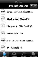 Streamer è un applicazione disponibile in AppStore di ZodTTD, sviluppatore di psx4iphone e quake4iphone, tramite la quale è possibile vedere in streaming in una sola applicazione alcuni canali televisivi e radiofonici. Attualmente sono disponibili soltanto 12 canali in inglese ma è possibile aggiungerne altri tramite Bookmark.