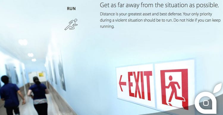 Gli attentati che hanno sconvolto e continuano a sconvolgere il mondo hanno costretto le aziende ad istruire il proprio personale sulle modalità per affrontare allarmi. Anche Apple, nella sezione del proprio sito destinata ai dipendenti, fornisce le linee guida per il comportamento da adottare in caso di pericolo.