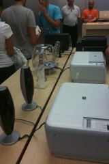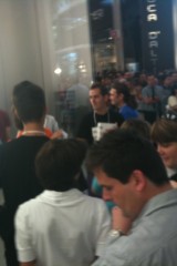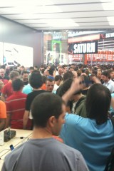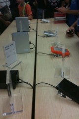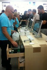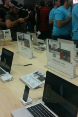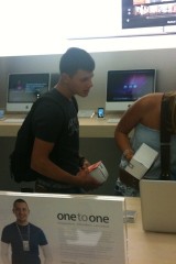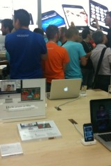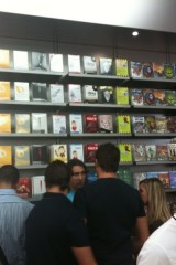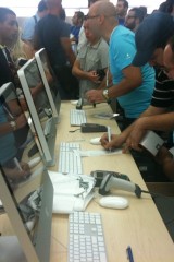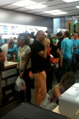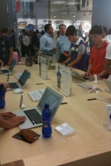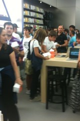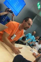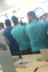 Appena si entra nel negozio sembra di essere a casa propria, ci si siede, si utilizza il WiFi gratuito, si ascolta la musica.. insomma è un posto dove passare un po’ di tempo in relax (a parte oggi). Lo staff si differenzia in base al colore della maglietta: Gli azzurri assistono i clienti nella scelta dei prodotti e sono divisi per competenza; quelli con la maglietta arancione sono i concierge che indirizzano le persone verso i commessi competenti in quel determinato prodotto; ed infine ci sono quelli dello Genius Bar, ovvero dei tecnici che forniscono assistenza e tengono seminari ai quali ci si può iscrivere dall’Apple Store stesso.