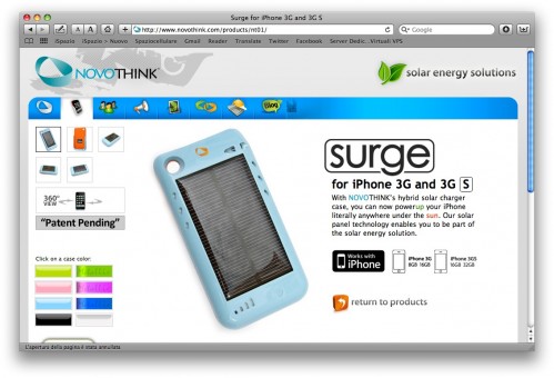 La International Creative Minds ha annunciato di aver chiuso un accordo con Novothink per la commercializzazione della “Solar Surge” in Europa. Si tratta di un caricabatterie ad energia solare per iPhone ed iPod con tanto di certificazione Apple.