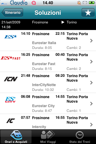 ProntoTreno è l’applicazione ufficiale di Trenitalia per l’iPhone e l’iPod Touch 2G. Si tratta di una pratica guida grazie alla quale potrete organizzare in maniera comoda e veloce i vostri viaggi direttamente dal dispositivo. Di seguito trovate l’elenco di tutte le funzioni dell’applicazione. Con ProntoTreno potrete: