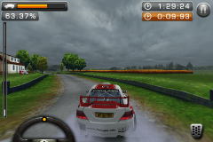 Arriviamo subito alla gara vera e prorpia. La prima cosa che notiamo è la cura grafica sia per quanto riguarda il rendering 3D dell’automobile che quello dei paesaggi, degli alberi e del cielo. Non siamo ancora ai livelli di Real Racing ma ci si avvicina molto.