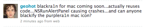 GeoHot ha appena scritto un nuovo Tweet nel quale annuncia l’arrivo imminente di Blackra1n per Mac.