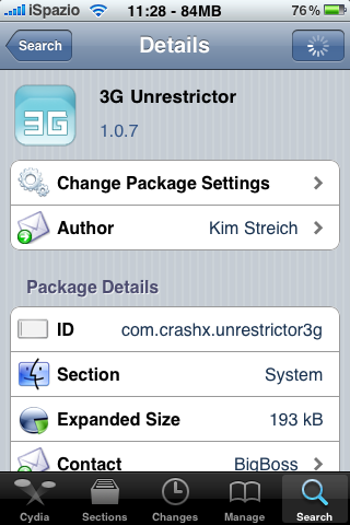 3G Unrestrictor costa 2$ ed è disponibile in Cydia Store tramite la repository di BigBoss.