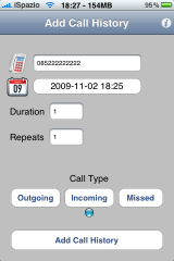 Il funzionamento è molto semplice: Appena lanciamo l’applicazione ci troveremo di fronte ad una schermata unica dove dovremo immettere il numero di telefono, la data, l’ora e la durata della chiamata. Infine bisognerà specificare se intendiamo far comparire questo record all’interno delle chiamate in Arrivo, in Uscita oppure Perse. Quando siamo soddisfatti non ci resterà altro che cliccare sul tasto “Add Call History” e lanciare l’applicazione Telefono per verificare il corretto funzionamento.
