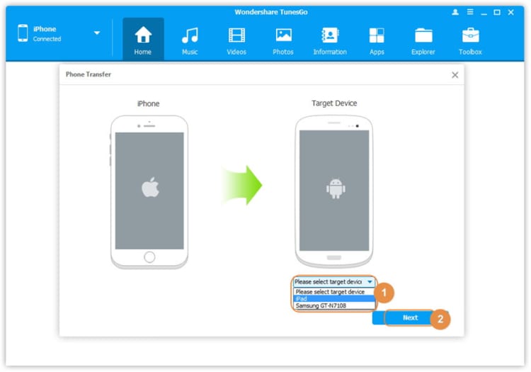 3. Phone to Phone Transfer: consente di trasferire dati (foto, video, sms, contatti, musica, ecc..) tra due smartphones diversi (anche se uno è iOS e l’altro è Android)