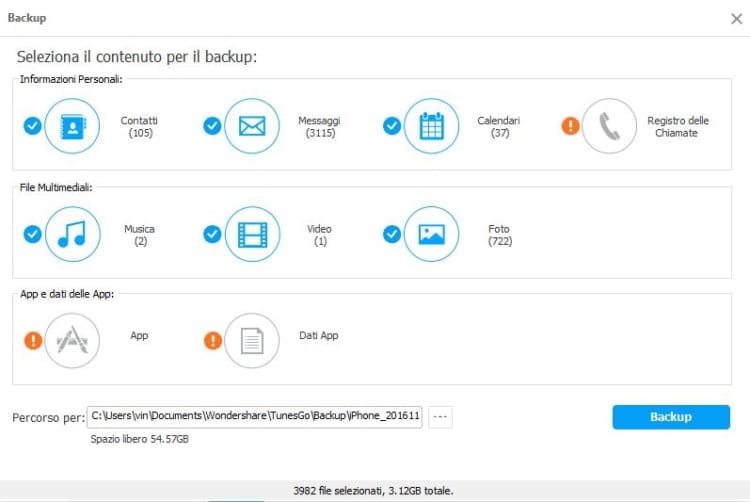 1. Backup & Ripristino in 1 clic: consente di effettuare backup e ripristino (sia selettivo che totale) di tutti i dati presenti sul tuo smartphone/tablet iOS o Android
