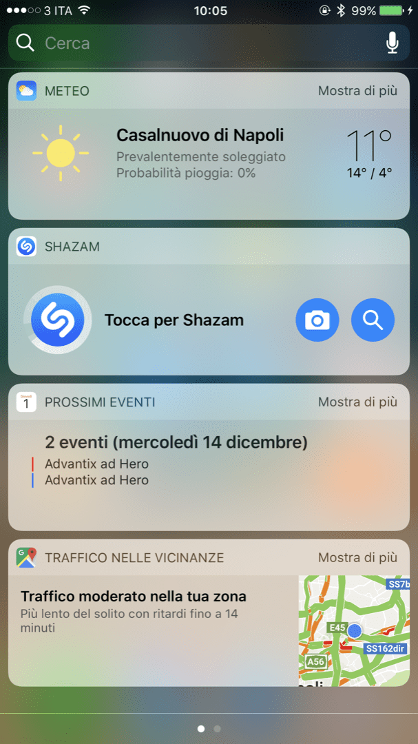 Google Maps infatti è stato arricchito della funzionalità di traffico in tempo reale attraverso un Widget che può essere posizionato in Lockscreen e di conseguenza anche nel Centro Notifiche. Per aggiungere questo Widget, direttamente dalla lockscreen spostatevi verso sinistra, scorrete la pagina fino in fondo e cliccate il tasto Modifica. Trovate “Traffico nelle vicinanze” e cliccate il tasto “+” in corrispondenza.