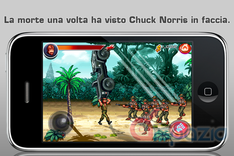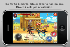 Dovremo calarci nei panni dell’uomo più tosto d’America con il primo gioco di Chuck Norris per iPhone e iPod touch. Saremo catapultati nella giungla cambogiana per liberare dei prigionieri di guerra tenuti in ostaggio da un manipolo di soldati estremisti. Ispirato ai giochi arcade vecchio stile, Chuck Norris ha tutti gli ingredienti semplici ma divertenti di un picchiaduro tradizionale arricchiti da combo pazzesche, mini giochi emozionanti e ambientazioni totalmente distruttibili. La ciliegina sulla torta è che puoi scattare foto di chi ti sta simpatico (o antipatico) con il tuo iPhone e poi scazzottarlo nel gioco! Questo sì che è un antistress brevettato, quello di Chuck Norris!