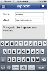 - Aggiunta l’icona “Segnalazioni” che vi permette di inviare una segnalazione in tempo reale sugli iPhone di tutto lo staff di iSpazio. Potrete segnalarci l’uscita di nuovi giochi, sconti in AppStore e quant’altro. La stessa funzione è disponibile anche nel sito mobile ma abbiamo deciso di separarla per risparmiarvi tutto il tempo di caricamento.