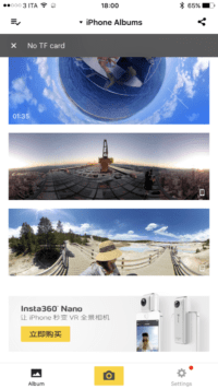 E’ anche possibile applicare filtri su immagini e video a 360° con un solo tocco e scattare screenshot in piena risoluzione della porzione di foto inquadrata sullo schermo con un altro tasto. Questo perchè i file multimediali ottenuti con Insta360 non andranno automaticamente nella Galleria nativa di iOS, ma resteranno nell’applicazione Insta360 Nano in quanto ne rende possibile la visualizzazione completa.