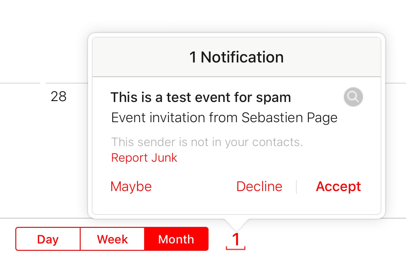 Qualche giorno fa vi avevamo segnalato un problema riguardo la ricezione di spam sui calendari iCloud con gli utenti che si trovavano, a loro insaputa, appuntamenti od eventi derivanti quasi esclusivamente da mittenti cinesi. Per arginare questo disservizio Apple ha attivato la funzione “Report Junk“.
