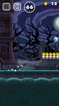 I salti sui muri (comunemente detti wall jump) possono essere effettuati semplicemente tappando più volte sullo schermo, mentre i piccoli ostacoli vengono superati automaticamente dal nostro Mario. Anche i nemici vengono oltrepassati automaticamente, ma se premiamo lo schermo mentre siamo posizionati esattamente sulla loro testa, il nemico verrà eliminato con un’acrobazia.