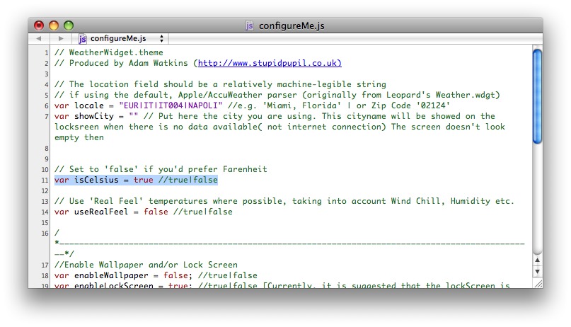 Nota: Nel file configureme.js è anche possibile stabilire il numero di minuti che deve intercorrere tra un aggiornamento e l’altro delle informazioni sul meteo. Di default è impostato su 45 minuti ma volendo potete aumentare questo timer o anche diminuirlo.