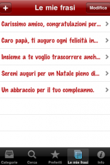 - Le mie frasi: potremo inserire nuove frasi personali che entreranno a far parte della raccolta, della ricerca e dei preferiti, contraddistinte dal colore rosso;